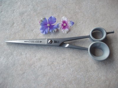 Product Description: 7 1/2" German Ice Tempered Shear with removable finger rest and insertable finger rings. Extremely sharp for a smooth cut. This shear is manufactured in Solingen, Germany and made with the finest craftsmanship.