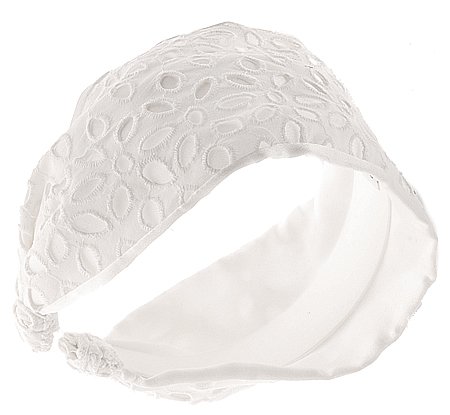 Product Description: L. Erickson USA Lined Scarf Headband - Cotton Eyelet is a lovely band that creates a sweet, polished appearance. The classic style headband features a cotton eyelet scarf, lined with silk, for an instantly enchanting look. Ideal for most hair types, the headband will hold hair in place while the scarf smoothes and contains loose hairs.