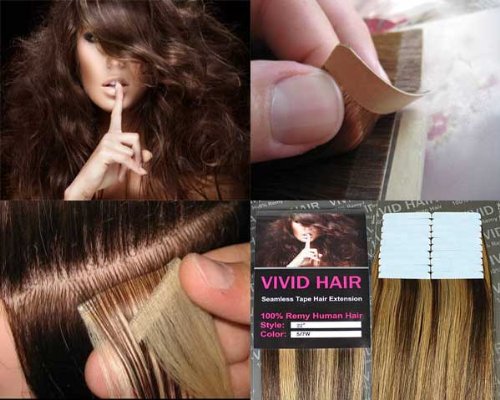 Product Description: Tape extensions are reusable, seamless hair extensions that are pre taped and made from high quality 100% human hair. It requires no adhesives on the scalp, no weaving, braiding, clips, bonding, chemicals, or messy removal. Easy to apply with no tools needed. Our hair comes pre taped as in adding tape yourself is time consuming and messy. We have done this for you. Lasts up to few months with proper care, until your starts growing out. You need to reapply the tape to the weft and then apply to your hair. Removal is easy; you simply spray the remover and peel off the weft with no heating or tools. You save lots of time and money putting in tape extensions.