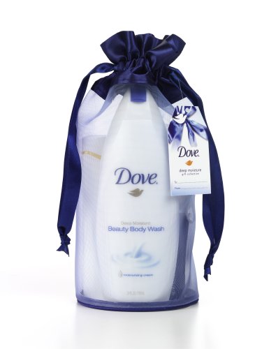 - Contains: 24oz Dove Deep Moisture body wash, 8.5oz Dove Cream Oil hand/body lotion, 4.25oz Dove White bar soap and a bath pouf.