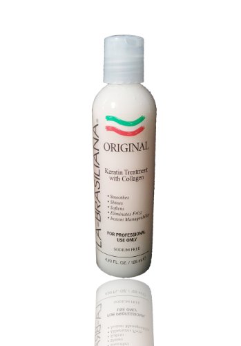Product Description: La Brasiliana Orginal keratin treatment-An advanced keratin-based straightening treatment Formulated with collagen to improve vitality & flexibility of hair Adds luster to hair while diminishing frizz Unveils smoother, more manageable, healthier & younger looking hair Perfect for all hair types For professional stylist use only-size: 4.2oz