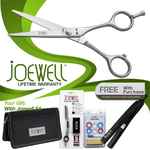 Product Description: The Joewell shear is the product of an evolutionary process that is unique in the world of hair cutting shears. That process began with the desire to build a pure cutting tool uncompromised by the need to appeal to a broad spectrum of stylists. Joewell's line up shears are the best examples of that process. And they're just as uncompromised and pure in purpose as their ancestors. Blade: CustomHandle: StraightTension: Flat ScrewFinish: Liquid SilverSize: 5.5" Material: Stainless SteelComes with FREE:1- Black Mini Flat Iron $49.00 Value2- Joewell Swivel Razor $29.00 Value3- Joewell 8 Pocket Case $69.00 Value