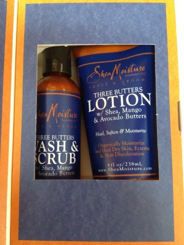 Product Description: Shea Moisture Shave and Groom GIFT PACK features Three Butters Wash & Scrub and Lotion with Shea, Mango and Avocado Butters.