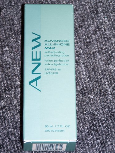 Product Description: AVON ANEW ADVANCED All-In-One MAX Self Adjusting Perfecting Lotion SPF 15 UVA/UVB - 1.7 fl. oz. : Proven Results in Just 7 Days. Experience the beauty wisdom of a "maxi-smart system" with this exclusive self-adjusting technology that moisturizes, exfoliates, and now is shown to enhance radiance with powerful phyto-based enzymes. Brings fast, superior results exactly where needed. This light-weight, oil-free replenishing lotion for normal-to-oily skin also features glycolic acid and pro-retinol complex to help reduce the appearance of fine lines and wrinkles. Includes UVA/UVB sunscreen and antioxidant protection. IN JUST 1 WEEK, 100% of users showed improvement in skin texture and clarity. IN 2 WEEKS, 81% of users exhibited improvement in fine wrinkling. IN 4 WEEKS, 100% of users showed improvement in skin radiance and overall photo-damage.