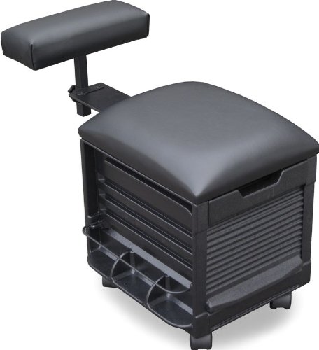 Product Description: IMPORTANT: This pedicure is designed to hold up to maximum 220lbs, it does NOT have locking wheels, therefore on a smooth floor it might slide. Operator should not stand up while customer has their leg/s on the footrest as the unit may flip. (Photo #2 shows similar unit at work with product not included)Made in USA! By DINA MERI leader in Salon equipment manufacturing. This unit features: HIGHLY MODIFIED HIGH IMPACT ABS CONSTRUCTION BODY, MAKES OUR CARTS 3-5 TIMES STRONGER & MUCH MORE IMPACT RESISTANT THAN OUR COMPETITION, Luxury padded vinyl Seat & adjustable padded Foot Rest (Horizontal & Vertical), 2 assorted trays, "Easy Roll" Roll-up door and 2 side pockets with "tip-preventing" dividers and wire support for additional product storage.Holds up to 200lbs Colors: Black Overall Dimensions: 16"w x 20"d x 18"h, Weight: 19 lbs.