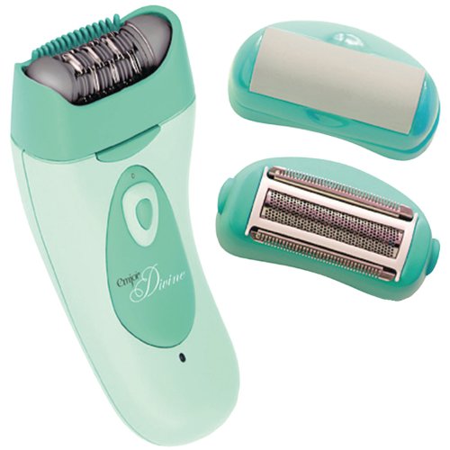 Product Description: The Emjoi rechargeable Divine is a terrific hair remover with 36 tweezer action discs to ensure rapid non-irritating and virtually painless hair removal from the root. With its glide tweezer technology and massaging finger attachment removing hair has never been easier or more comfortable. The Emjoi Divine removes hair as short as 0.5mm on the face, legs, bikini line and underarms leaving skin super smooth for up to 6 weeks. Has Built in lifetime antimicrobial protection against damaging bacteria by Silver Ion Technology. Gentle enough to remove delicate facial hair on the upper lip and chin. Includes dual function shaving attachment, includes exfoliation attachment with 6 cartridges ( 3 each for face and body ) for ultimate smooth skin. Dual speed control.